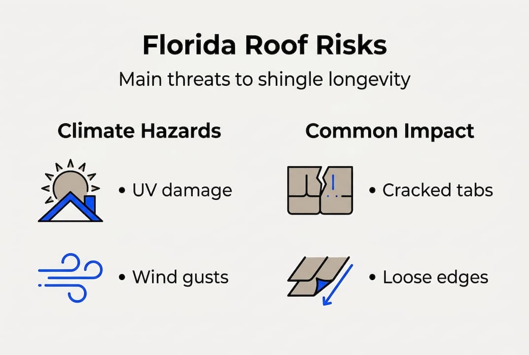 - Florida's climate accelerates shingle deterioration due to UV, humidity, and storm exposure.