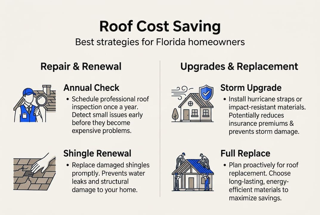 Pro Tip: Schedule a professional roof inspection every year, ideally before June when hurricane season begins. Early detection is the single cheapest form of roof cost saving available to you.