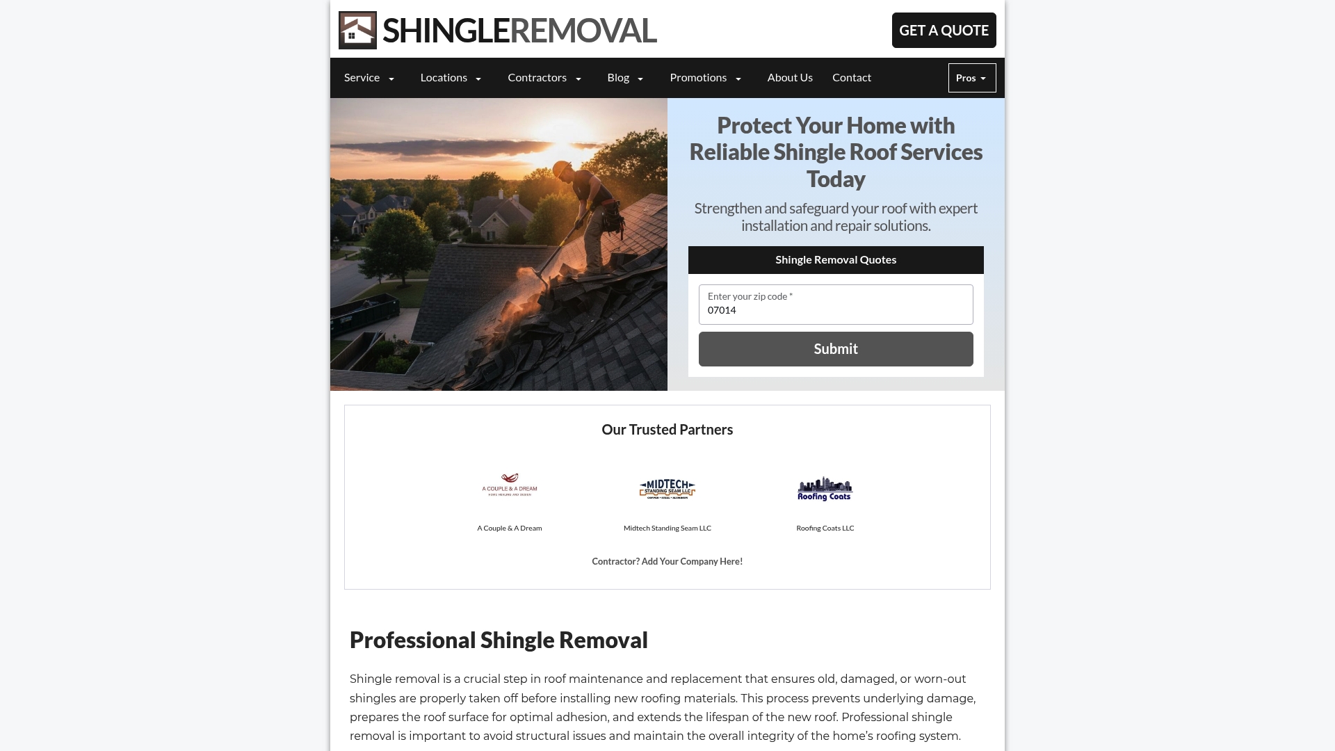 Shingle Removal simplifies finding local, certified professionals and comparing tailored quotes so you can pick the best-match contractor. The platform emphasizes contractor-managed removal and disposal, reducing the coordination burden for homeowners.
