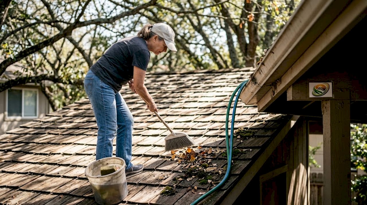 - Soft wash or low-pressure rinse: A controlled wash removes loose debris, algae blooms, and surface contamination without blasting granules off the shingles